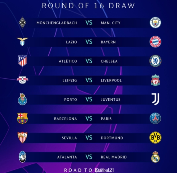 유럽 챔스답게 16강전부터 강팀간의 대결이 눈에 띄는데요. A.T마드리드와 첼시의 매치, 라이프치히와 리버풀의 매치, 바르셀로나 메시와 파리 네이마르의 매치가 그렇습니다. 첼시는 라리가 1위를 하고 있는 AT마드리의 방패를 쉽게 뚫지 못할것으로 보고 있으며, 바르셀로나와 파리의 대결은 스타선수들의 대결로 흥미를 끌겠지만 사실상 바르셀로나의 공격진은 파리에 비해 많이 노쇠했습니다. 이번 유럽 챔스 8강에 올라갈 팀을 조심스럽게 예상한다면 맨시티, 바이에른 뮌헨, 아틀레티코 마드리드, 라이프치히, 유벤투스, 파리생제르망, 도르트문트, 레알마드리드입니다.