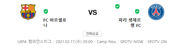 FC 바르셀로나 파리 생제르망 경기 실시간 중계 방송 유럽챔피언스리그 16강 1차전 하이라이트 영상 인터넷 사이트 SPOTV 스포티비 온에어