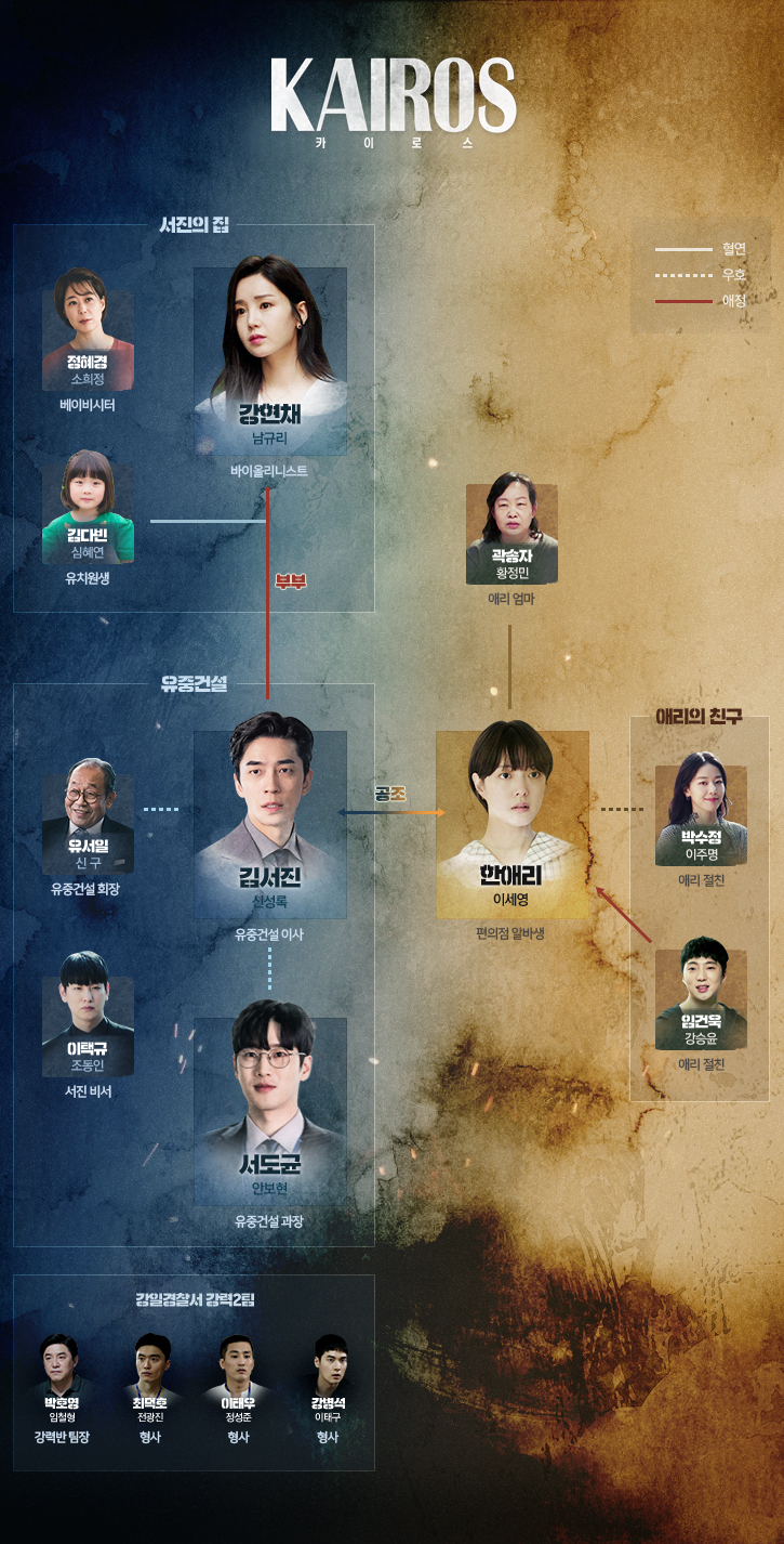 MBC에서 방송하는 월화드라마 카이로스는 어린 딸이 유괴 당해 절망에 빠진 한 달 뒤의 남자 서진과 실종된 엄마를 찾아야 하는 한 달 전의 여자 애리가 사랑하는 사람을 구하기 위해 '시간을 가로질러' 고군분투하는 타임 크로싱 판타지 스릴러 드라마다.