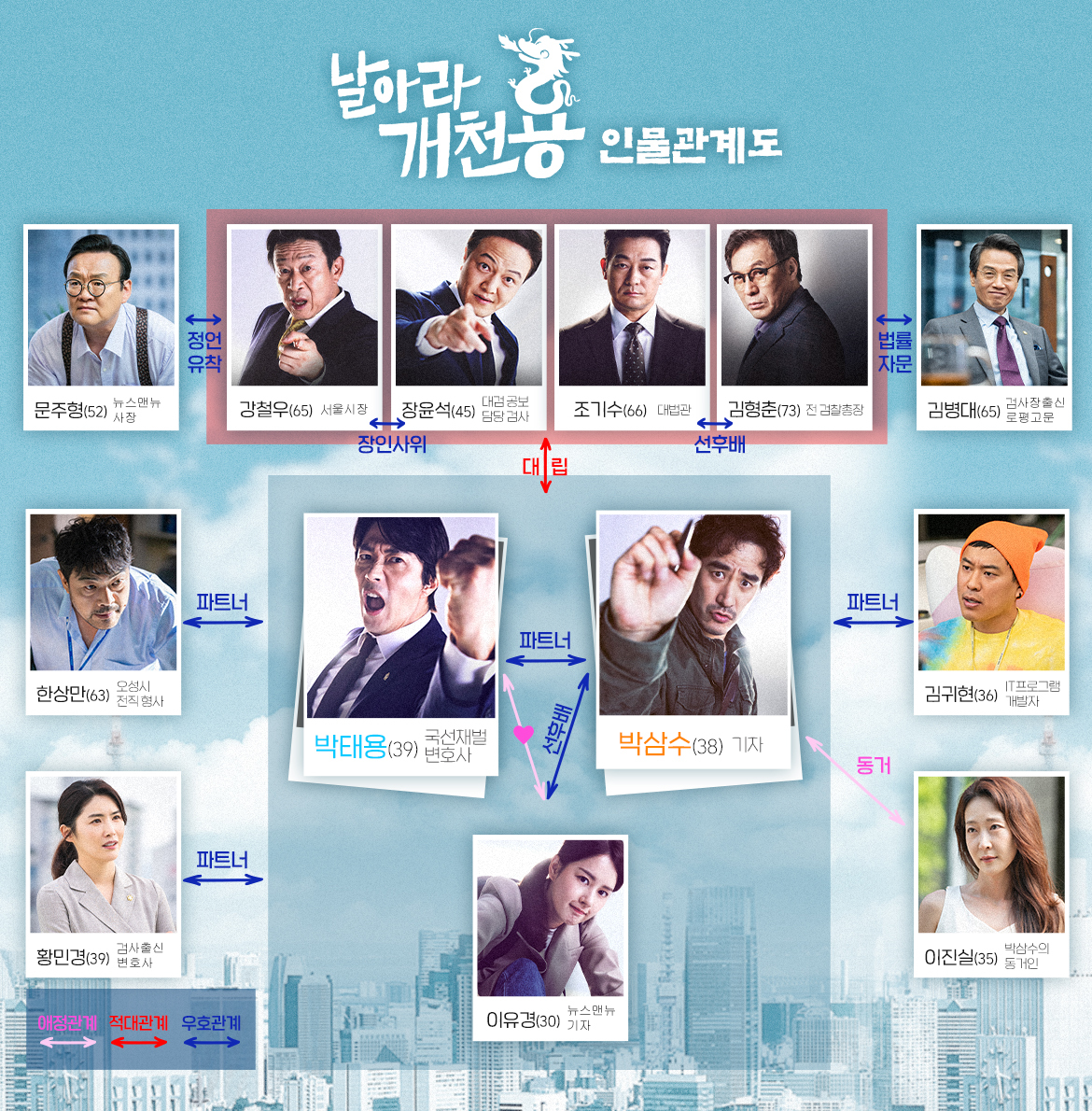 SBS 금토드라마 '날아라 개천용'은 억울한 누명을 쓴 사법 피해자들의 목소리를 세상에 대변하는 두 남자의 뜨거운 이야기그린 드라마입니다.
