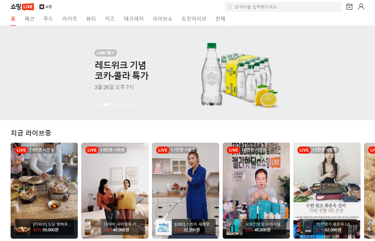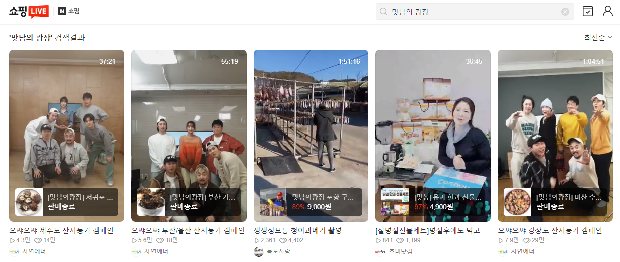 해당 홈페이지로 접속하면 네이버에서 제공하는 쇼핑LIVE 플랫폼으로 다양한 물건들을 판매하는 모습을 보실 수 있는데요. 맛남의 광장은 검색창에 검색하시면 됩니다.