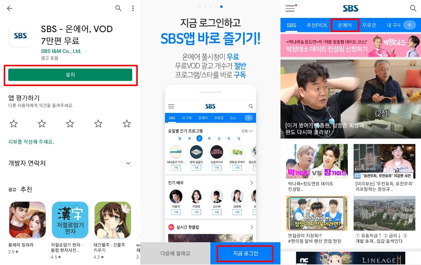 다양한 채널을 통해 SBS 온에어로 실시간 무료 시청하세요