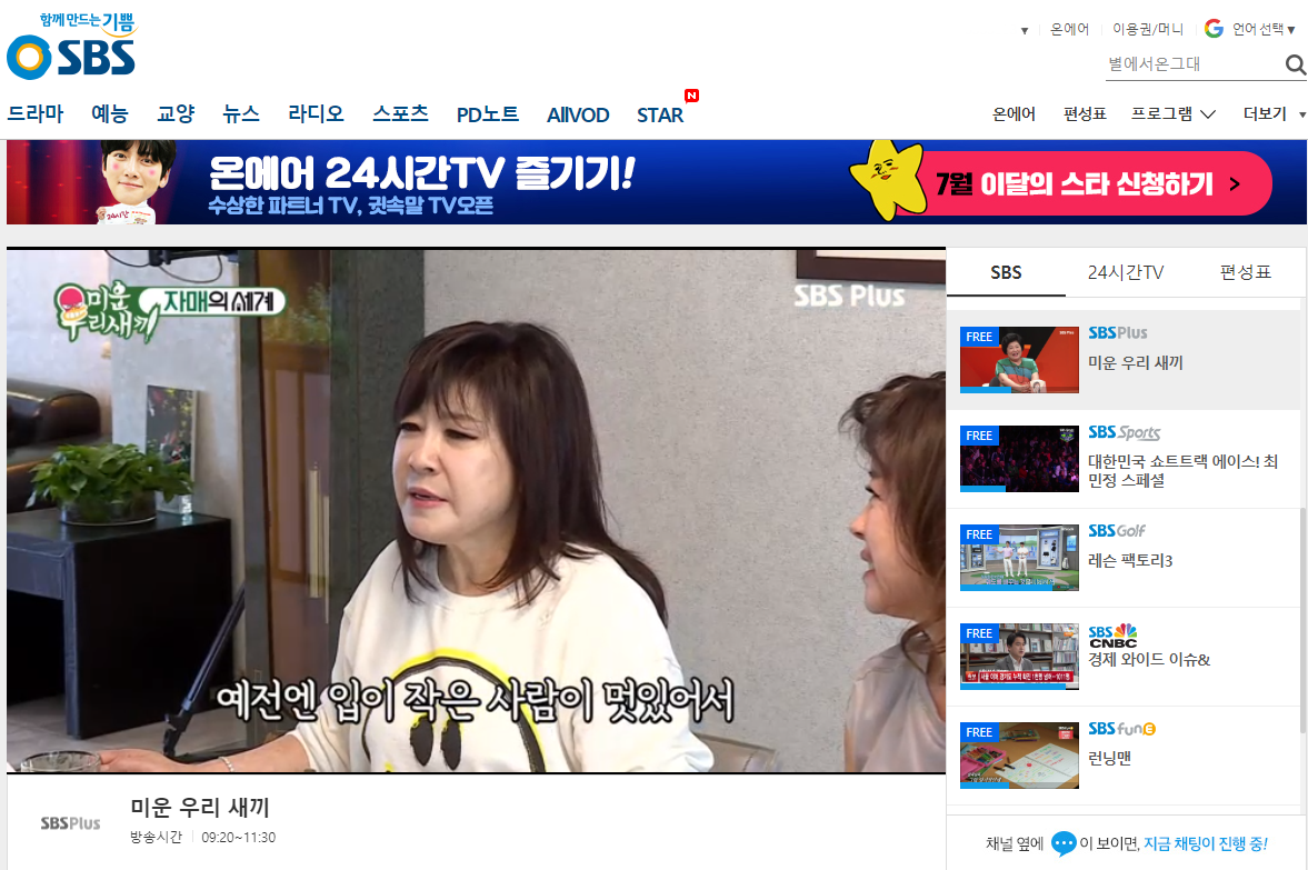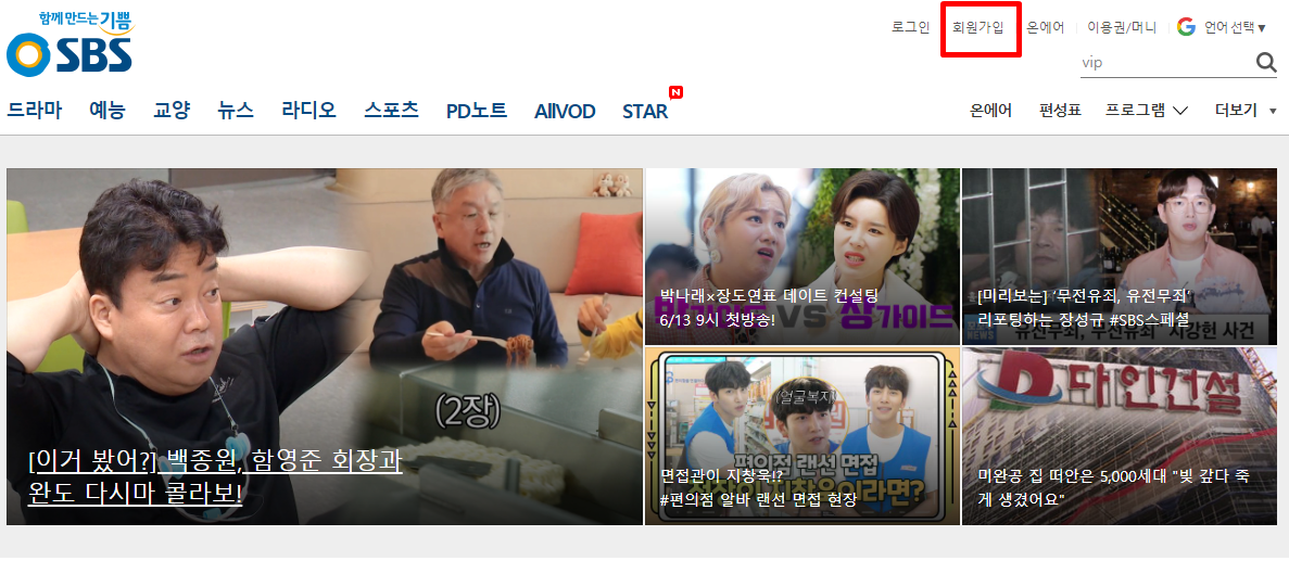 SBS 홈페이지 메인입니다. SBS 온에어는 회원 가입을 하셔야 미리보기 없이 풀버전으로 시청 하실 수 있습니다.