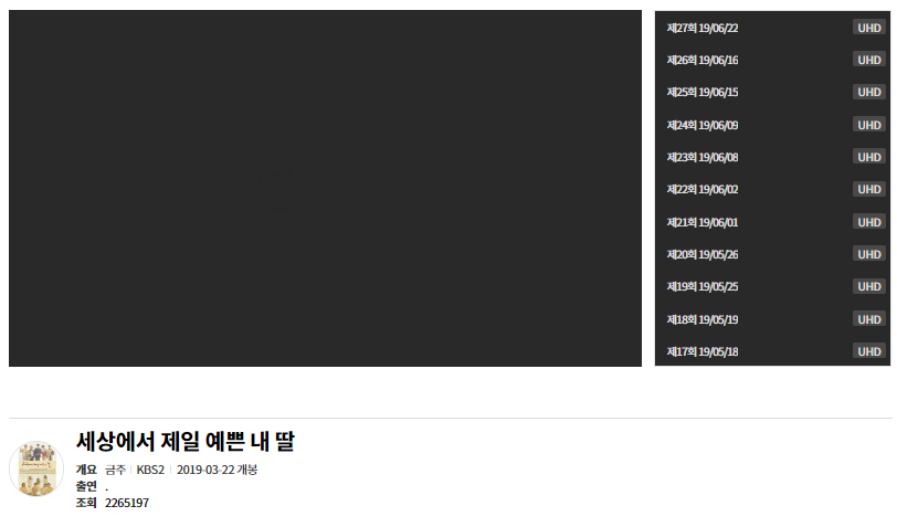 검색창에 해당 드라마 제목을 입력하시고 검색버튼을 누르시면 검색이 됩니다. 27회 방송을 눌러서 시청해봤는데, 괜찮은 화질로 볼 수 있었습니다. 아래를 참조하여 세상에서 제일 예쁜 내 딸을 시청하시기 바랍니다.