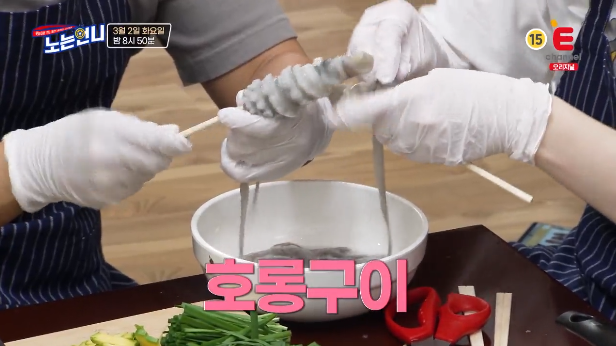 한편 노는언니에서 펜션에 자리 잡은 언니들은 저녁 시간을 위해서 박세리 팀과 김온아 팀으로 나뉘어 한식 대첩에 버금가는 낙지 요리 대회를 시작했습니다. 메인 셰프 박세리는 신나는 어깨춤과 함께 낙지 탕탕이를 준비했으며 한유미는 수석 보조의 자리를 노리며 박세리를 돕는다고 하는데요. 김온아 팀에서는 bts의 불타오르네를 연상시키는 불맛 가득한 낙지 호롱이를 준비한다고 해 궁금증을 자극했습니다. 본방을 시청 못하신 분들은 E채널 온에어를 통해 실기간TV다시보기 통해서 시청하실 수 있습니다.
